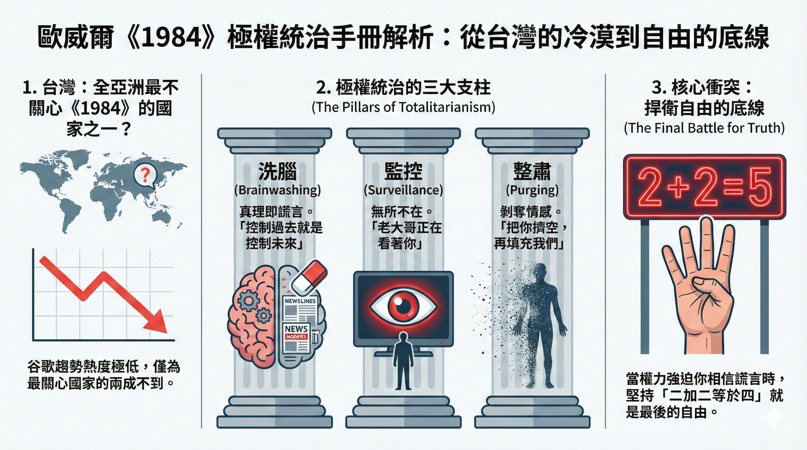 《1984》不只是反烏托邦小說,更是對權力、監控與語言操控的深刻預言。喬治歐威爾如何透過「老大哥」、「新語」與「雙重思想」揭露極權社會本質?完整書評與現代啟示。