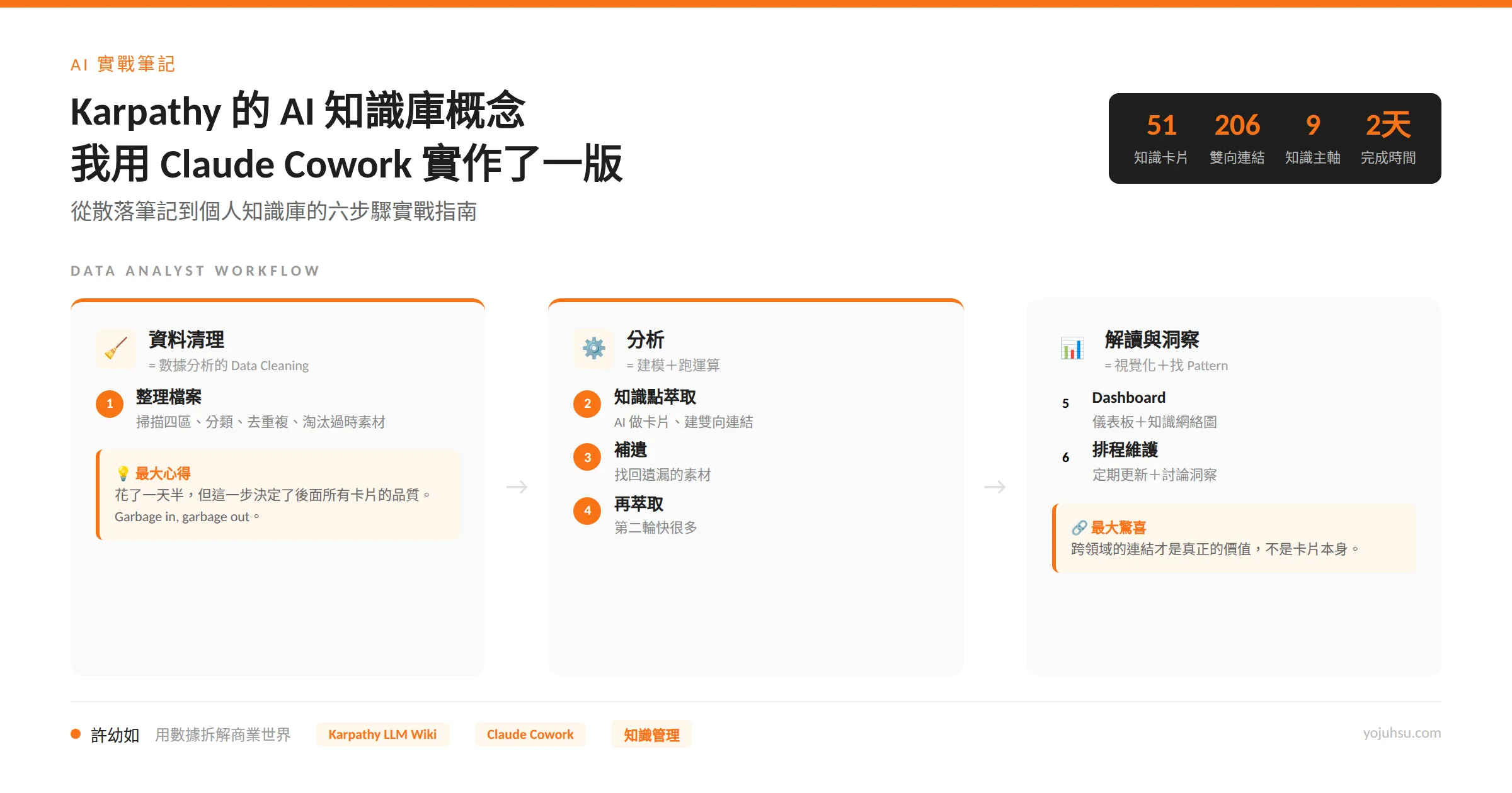 Karpathy AI 知識庫實作|用 Claude Cowork 從散落筆記蓋出 51 張知識卡片