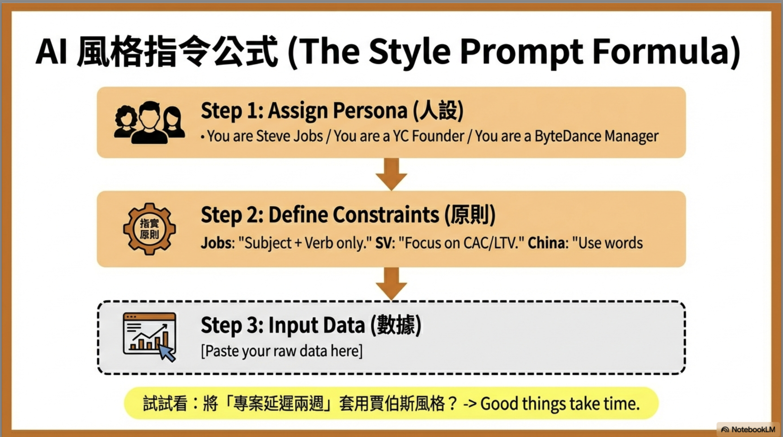 先拆風格 → 再寫系統指令 → 最後才搭配資料生成內容