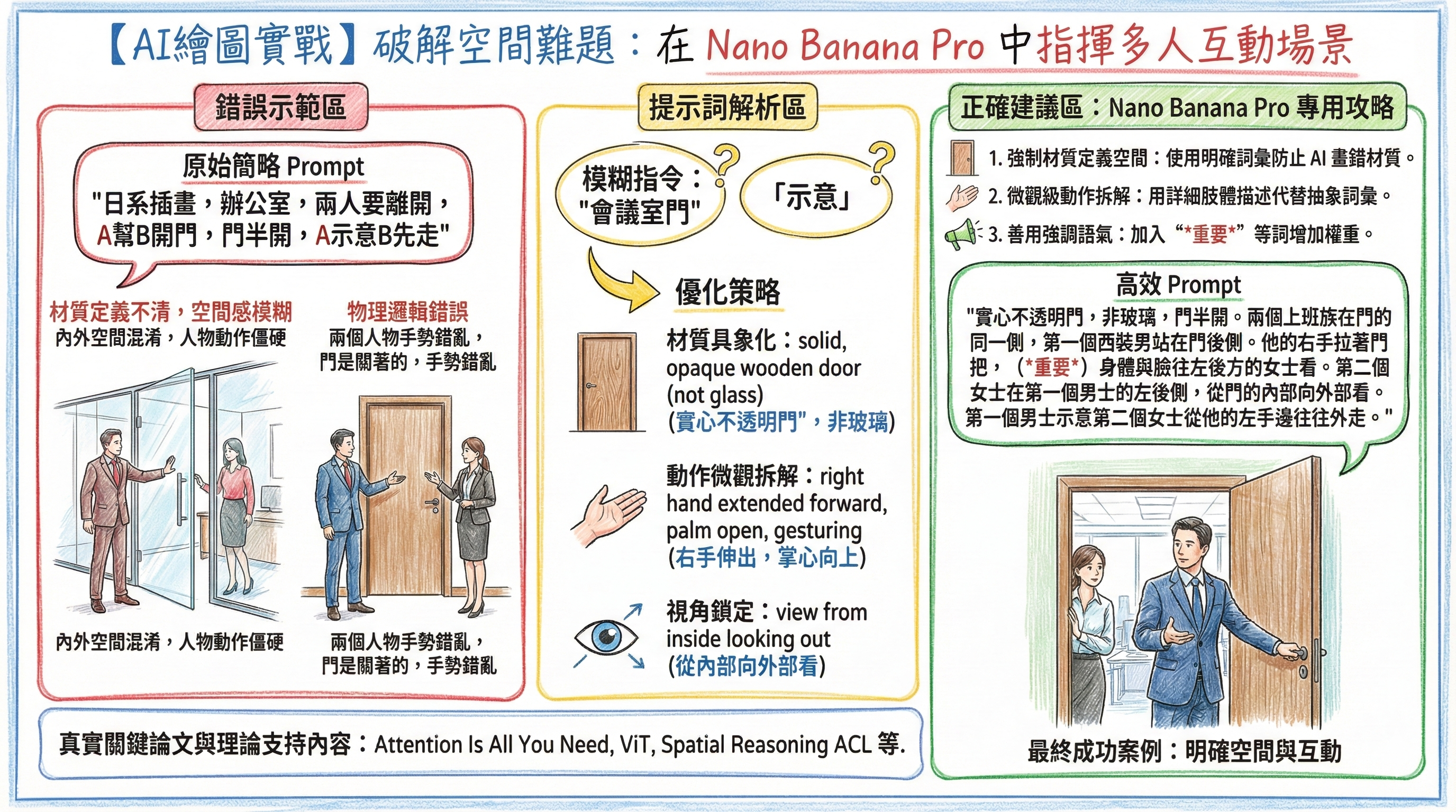 AI 為什麼連「門打開、兩個人站前後」都畫不好?原因不是 AI 笨,而是它根本沒學過空間感,只能用語意猜圖,於是畫出各種奇妙怪圖。