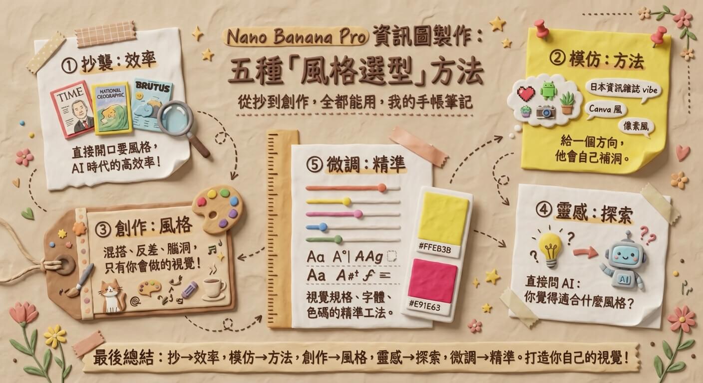《我如何用 Nano Banana Pro 做資訊圖?架構化思考的5種「風格選型」方法,從抄到創作,全都能用》