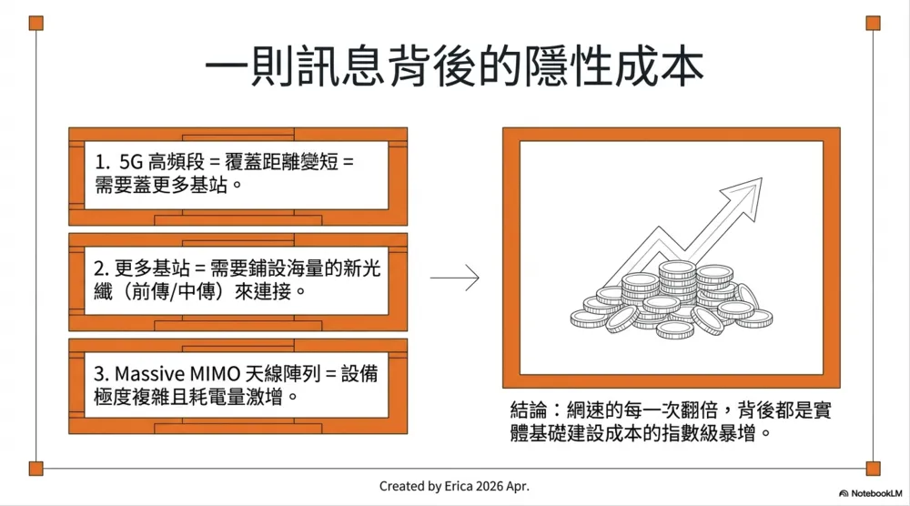 代價:天線陣列複雜度大增,基站成本和功耗都上升——這也是電信商成本壓力的來源之一(見下文)。