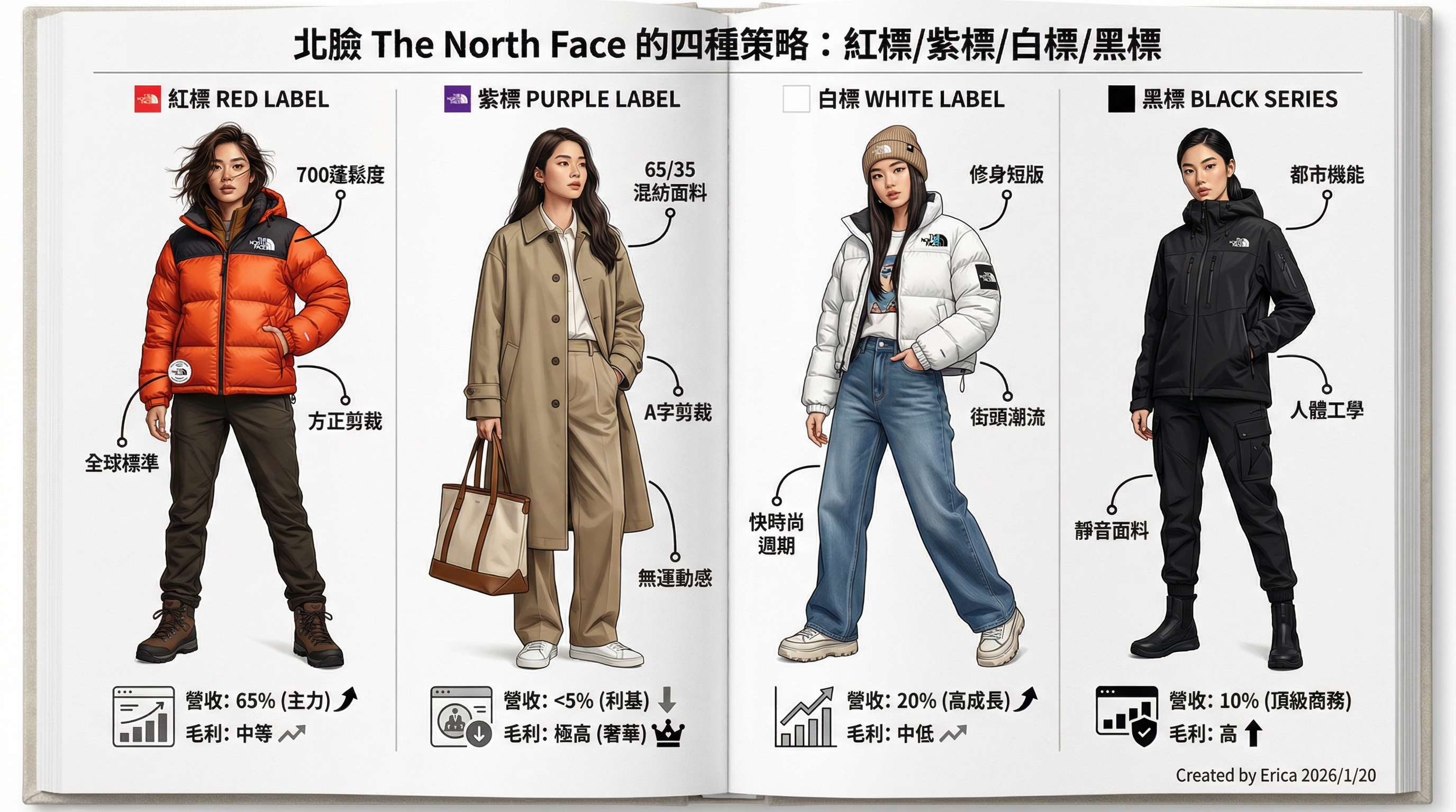 成功點:將 TNF 從「運動服」昇華為「時裝」,創造了極高的品牌溢價與排隊文化。