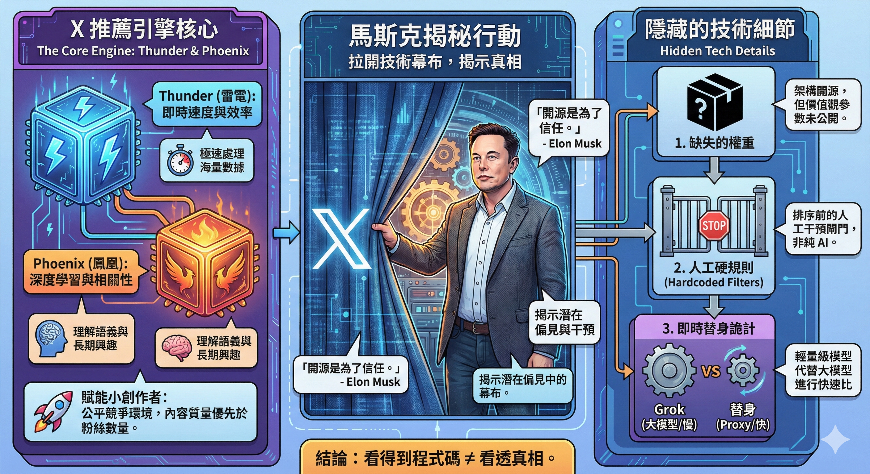 表面上看,這是一場透明度的勝利:官方宣稱演算法現在基於強大的 Grok 模型,移除了所有人工特徵工程,實現了「零人工干預」的數學純粹性。